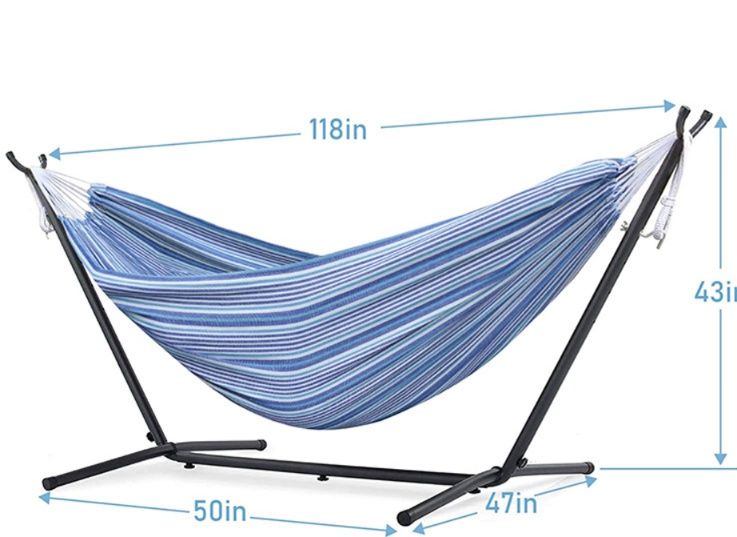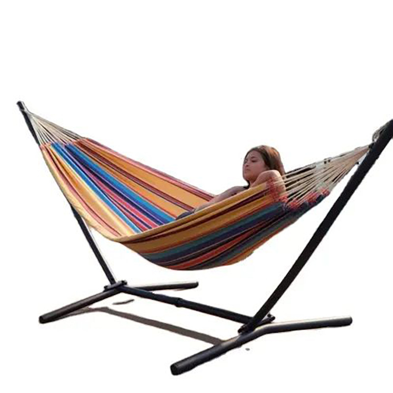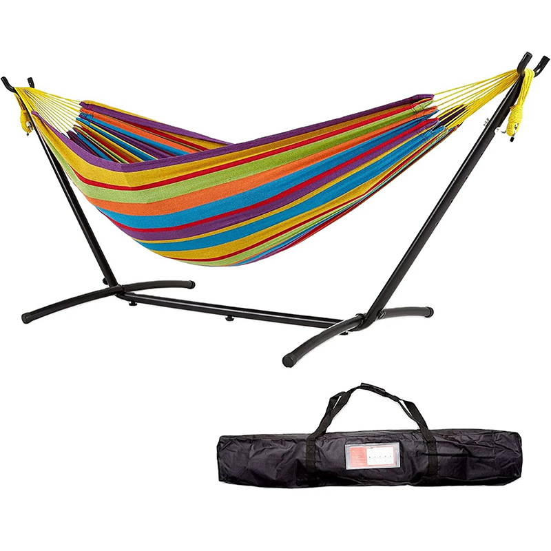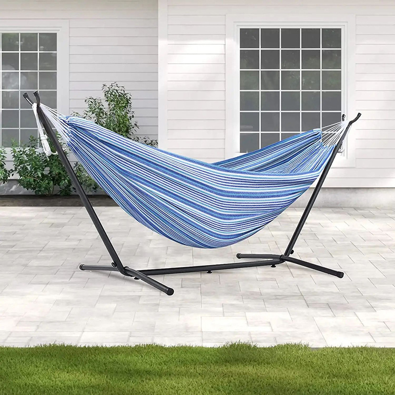 安定感のある金属製スタンドが付いた自立式のハンモックです。