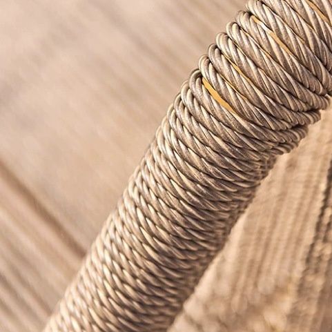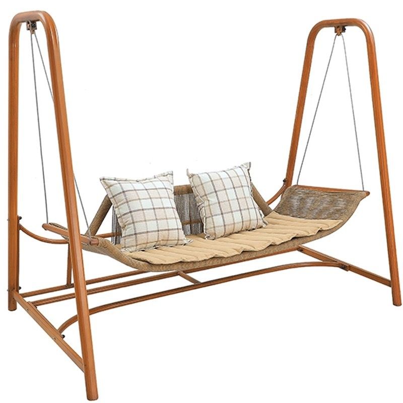 丈夫な金属製のフレームと編み込み素材の座面が特徴で、二人でゆったりと座れる広々設計となっています。