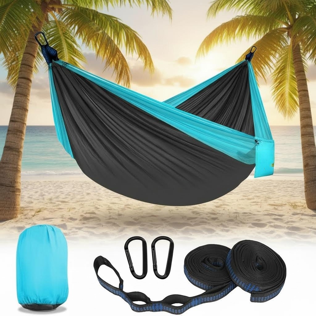 キャンプやアウトドアに最適なハンモックセットです。