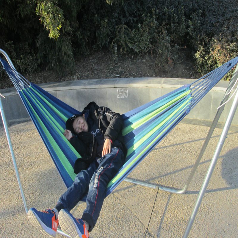 ハンモック特有のゆらゆら揺れる心地よさが、日常の疲れを癒してくれます。