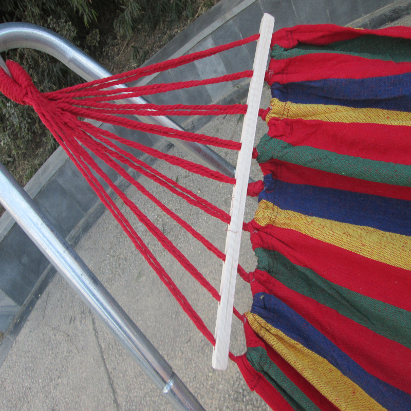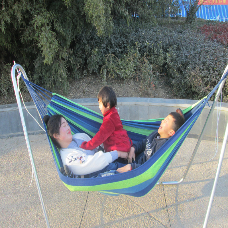 室内でも屋外でも使える丈夫な編み込み式のハンモックです。