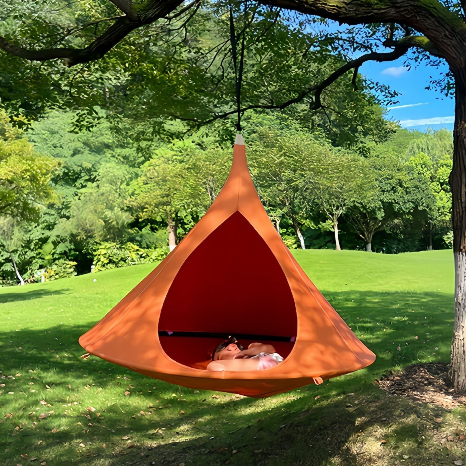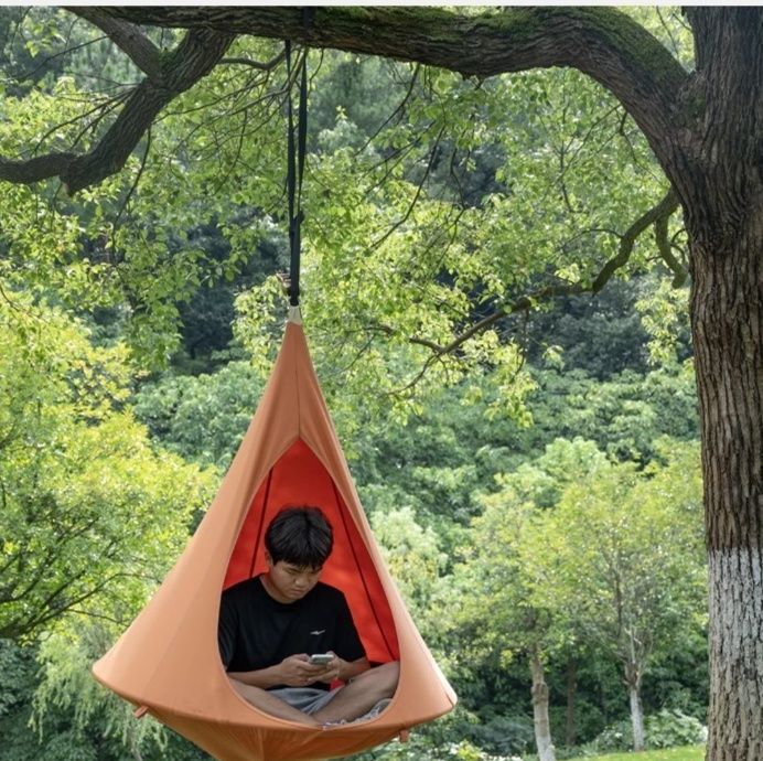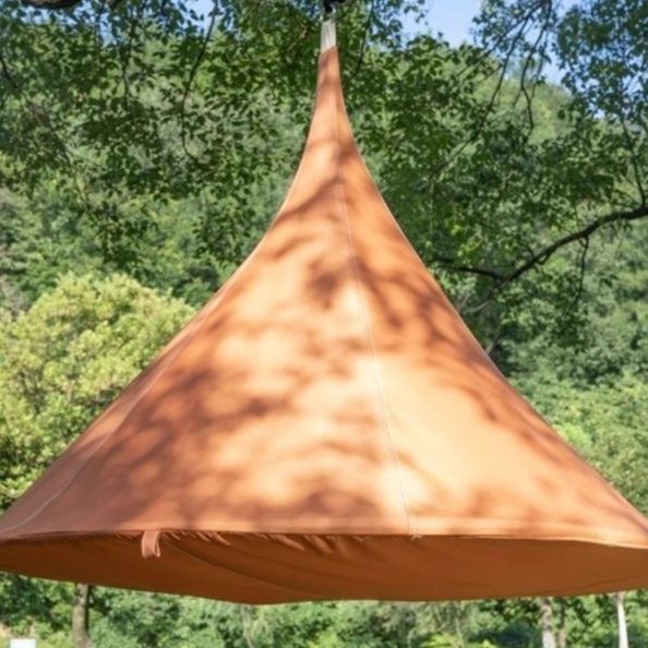 独特な円錐型デザインが特徴的な吊り下げ式のハンモックです。