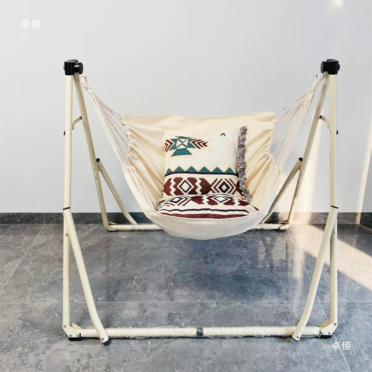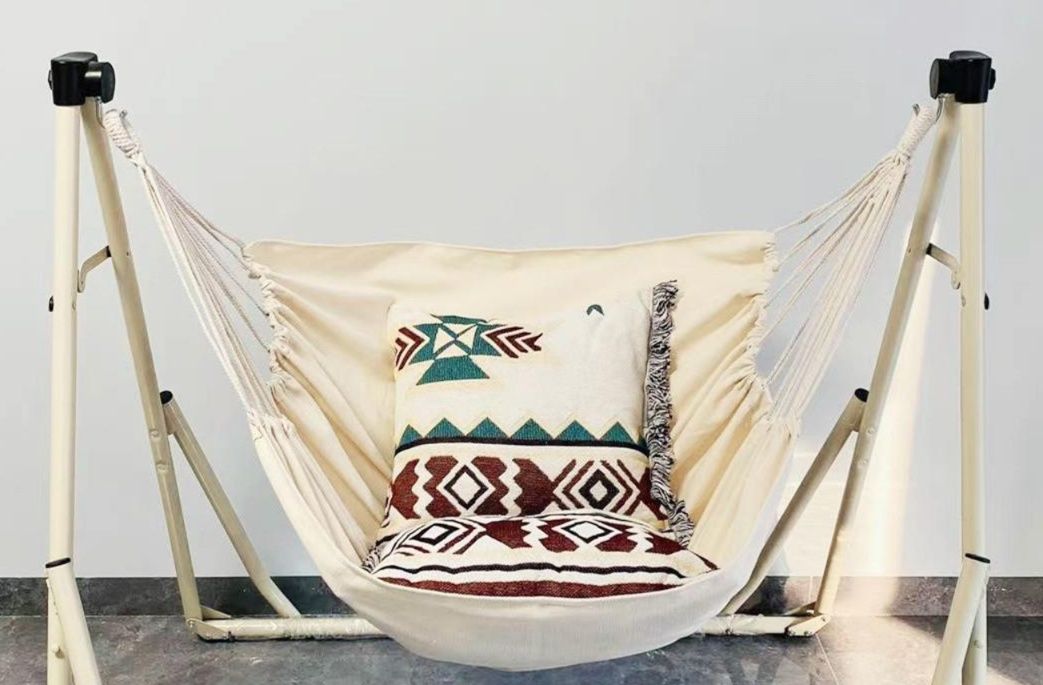 室内で手軽にくつろぎの時間を楽しめる自立式ハンモックです。
