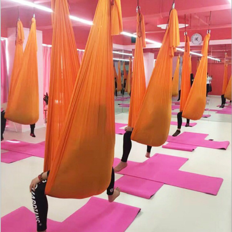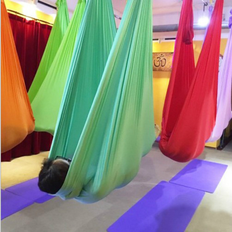 柔軟性のある伸縮素材を使用し、体を包み込むように支えることで、無重力感覚を楽しみながら全身のストレッチや筋力トレーニングが可能です。