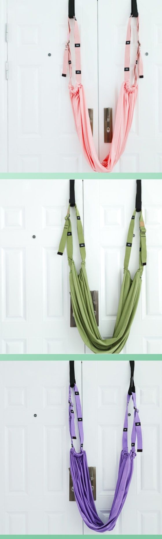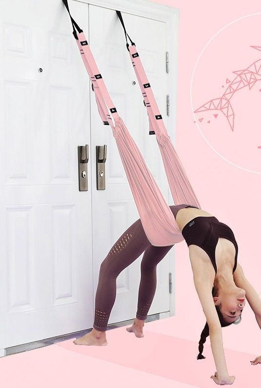 天井や専用フレームに取り付けることで、逆さまのポーズや開脚など様々な姿勢をサポートします。