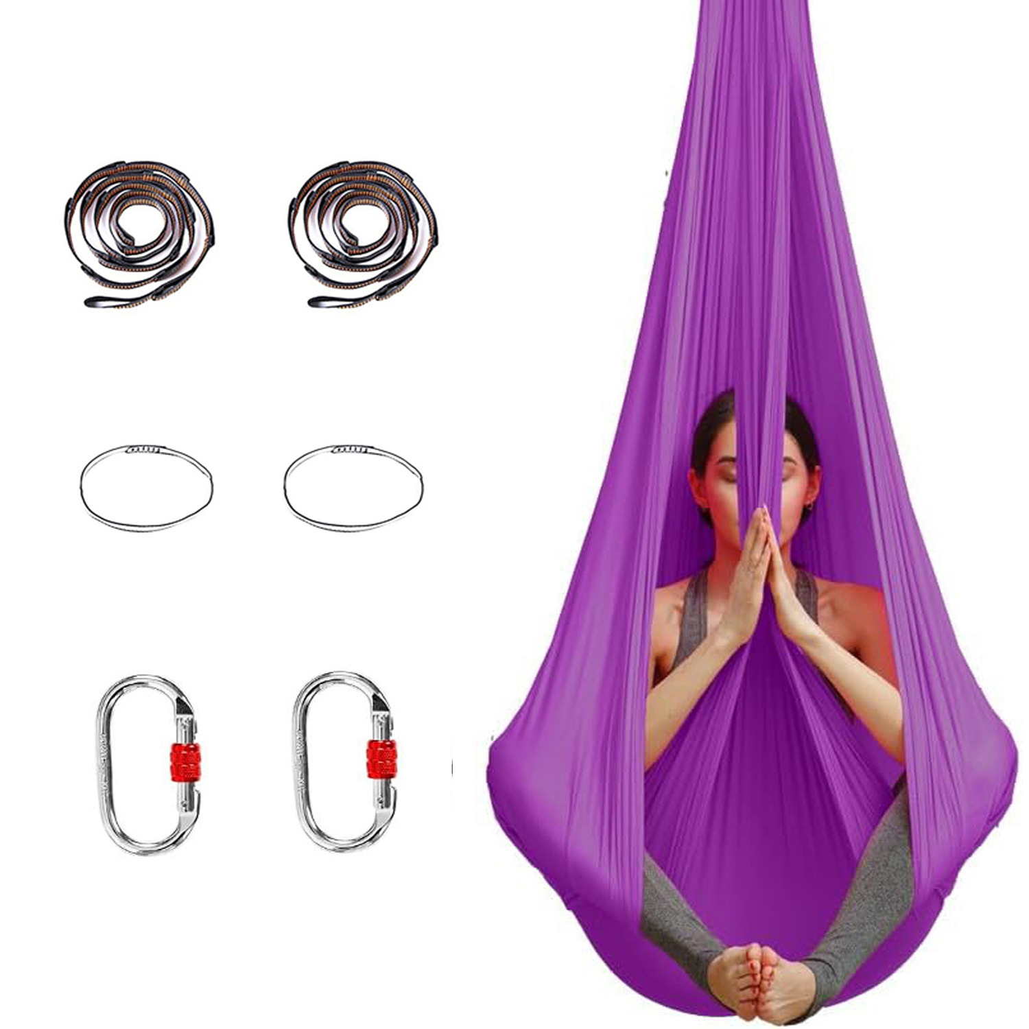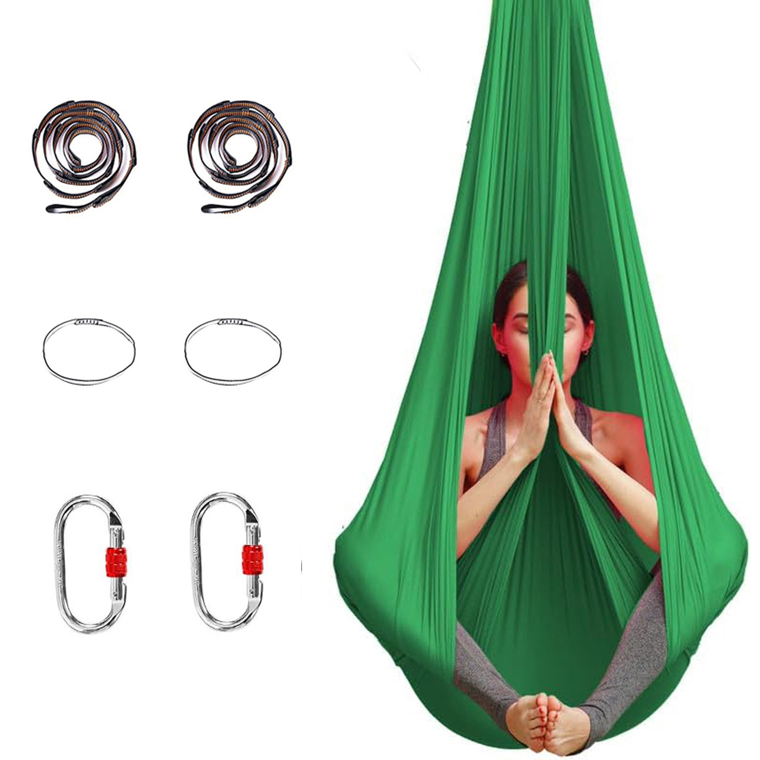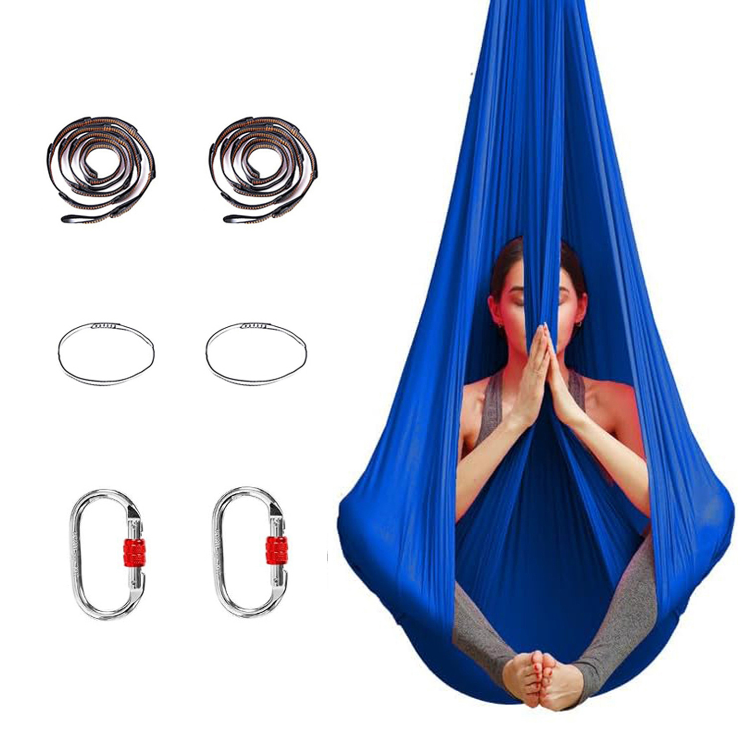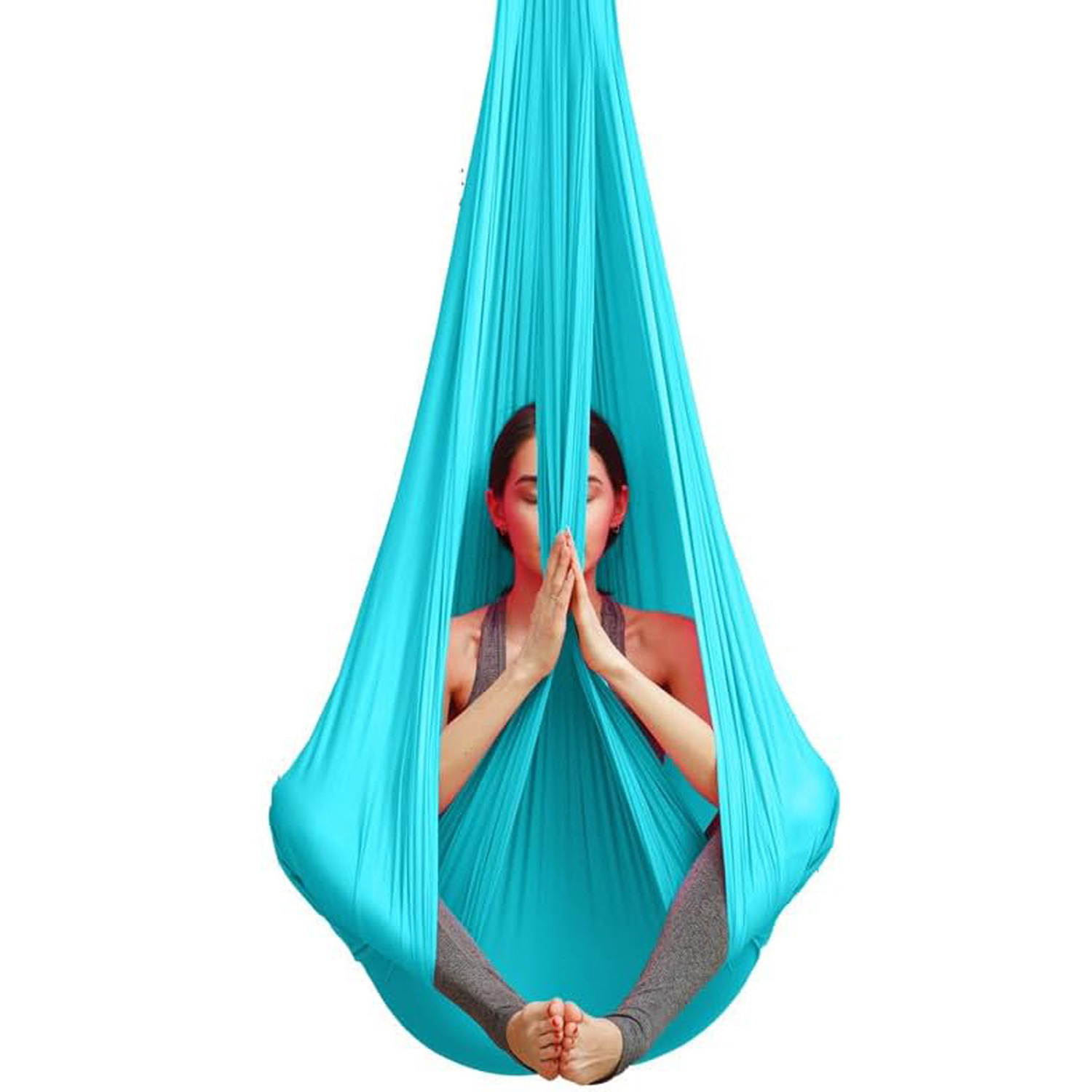 柔らかく丈夫な布製ハンモックが体を優しく包み込み、無重力感覚の中でヨガのポーズや瞑想を深めることができます。
